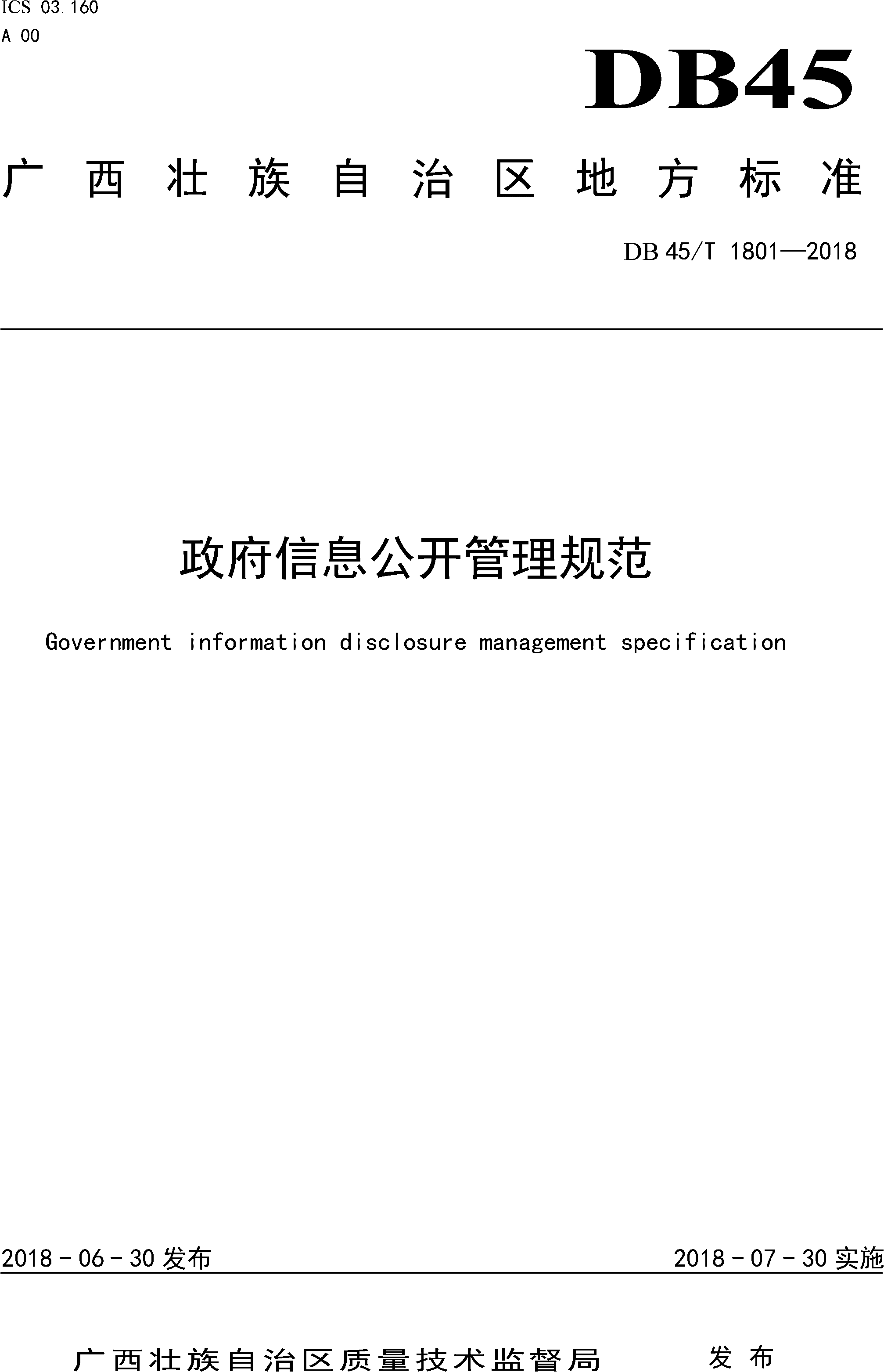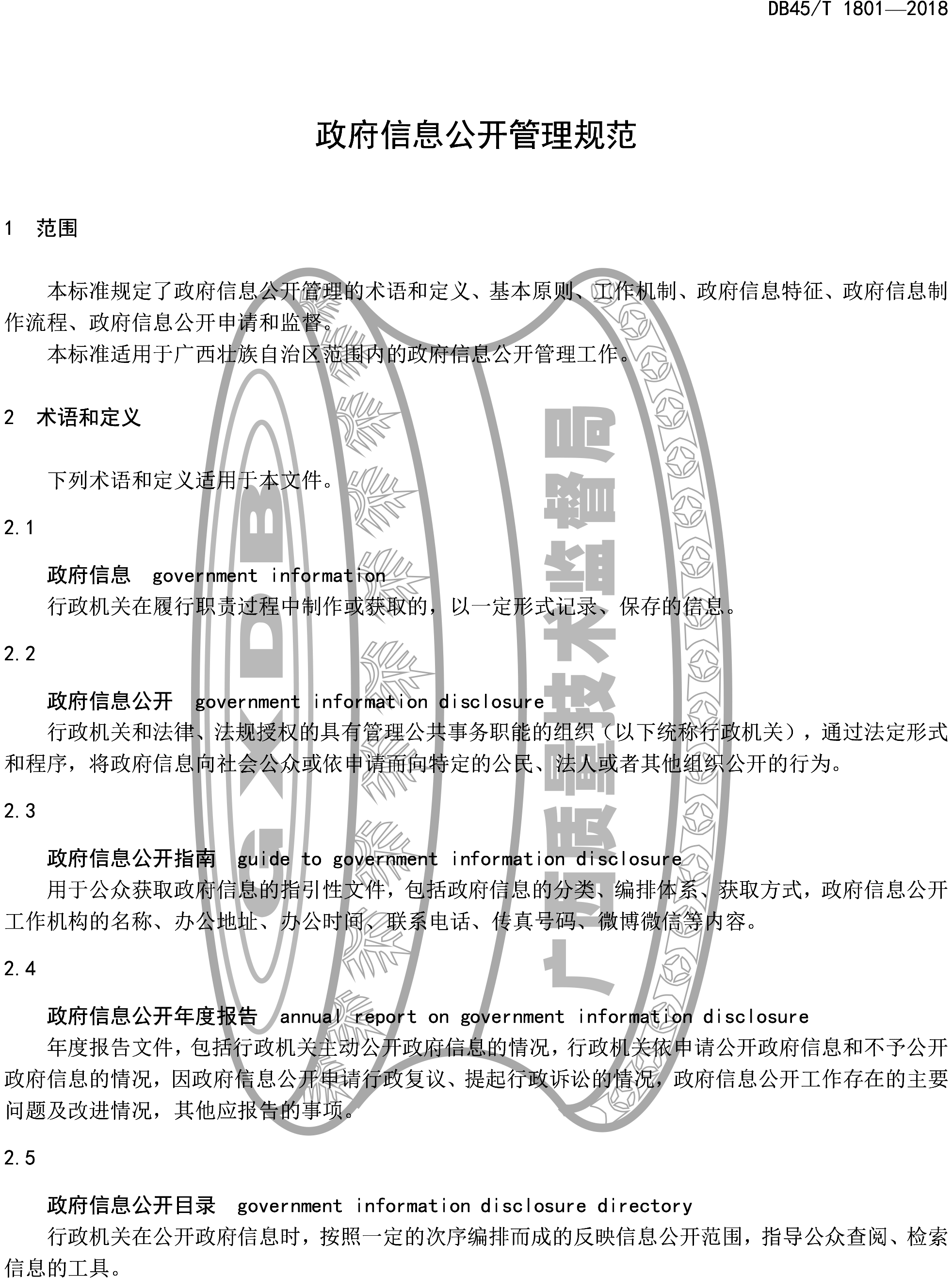 广西地方标准《政府信息公开管理规范》