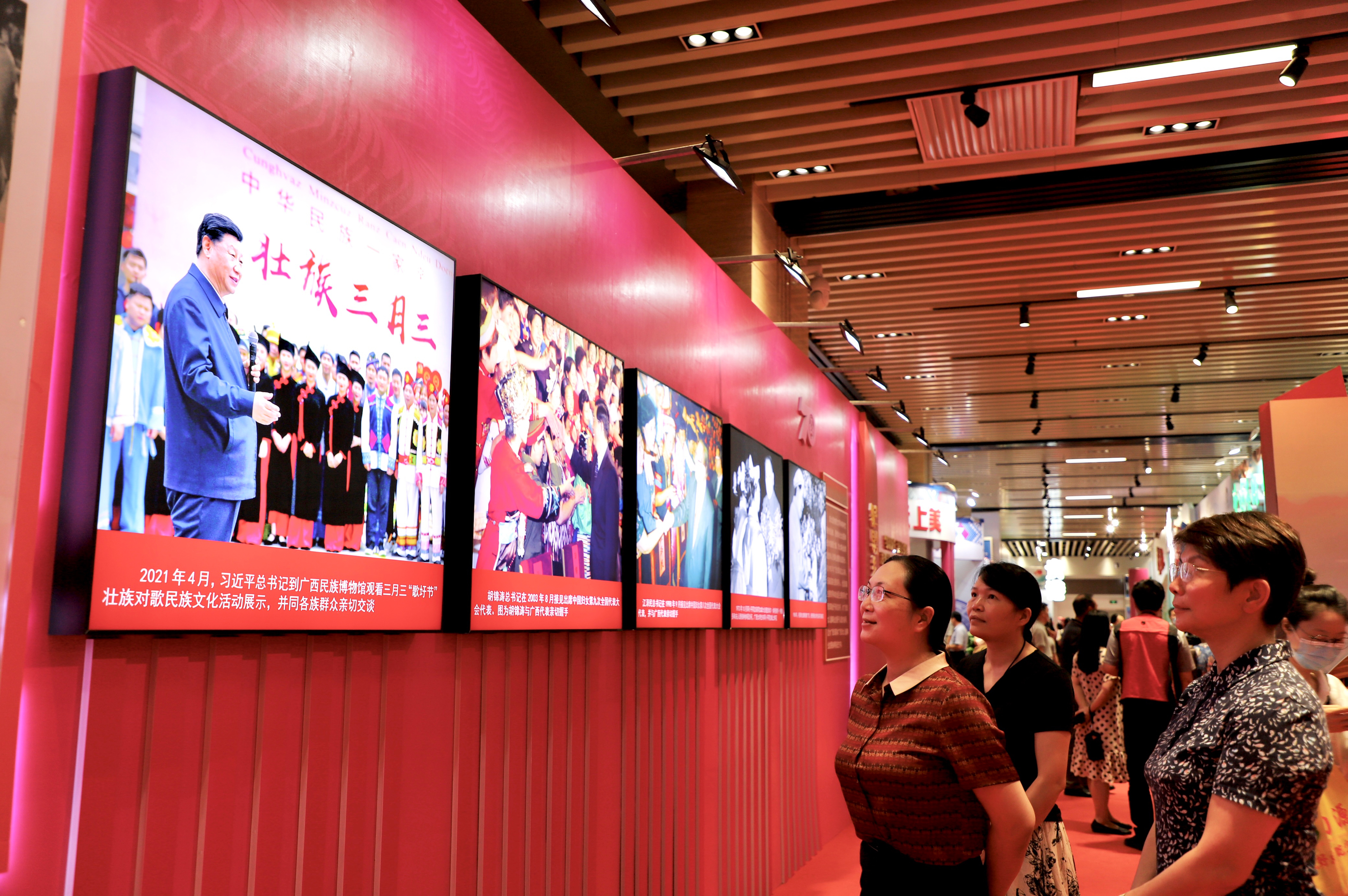 观展活动中,大家参观了领导关怀、强基固本、成就辉煌、关爱服务、凝心聚力、奋进新征程等六个展示单元,全面深入学习了解自治区妇联成立70周年以来广西妇女事业发展取得的辉煌成就。同时,欣赏传统民族手工艺作品,品尝地方特色美食,感受壮乡民族文化和巾帼风貌。